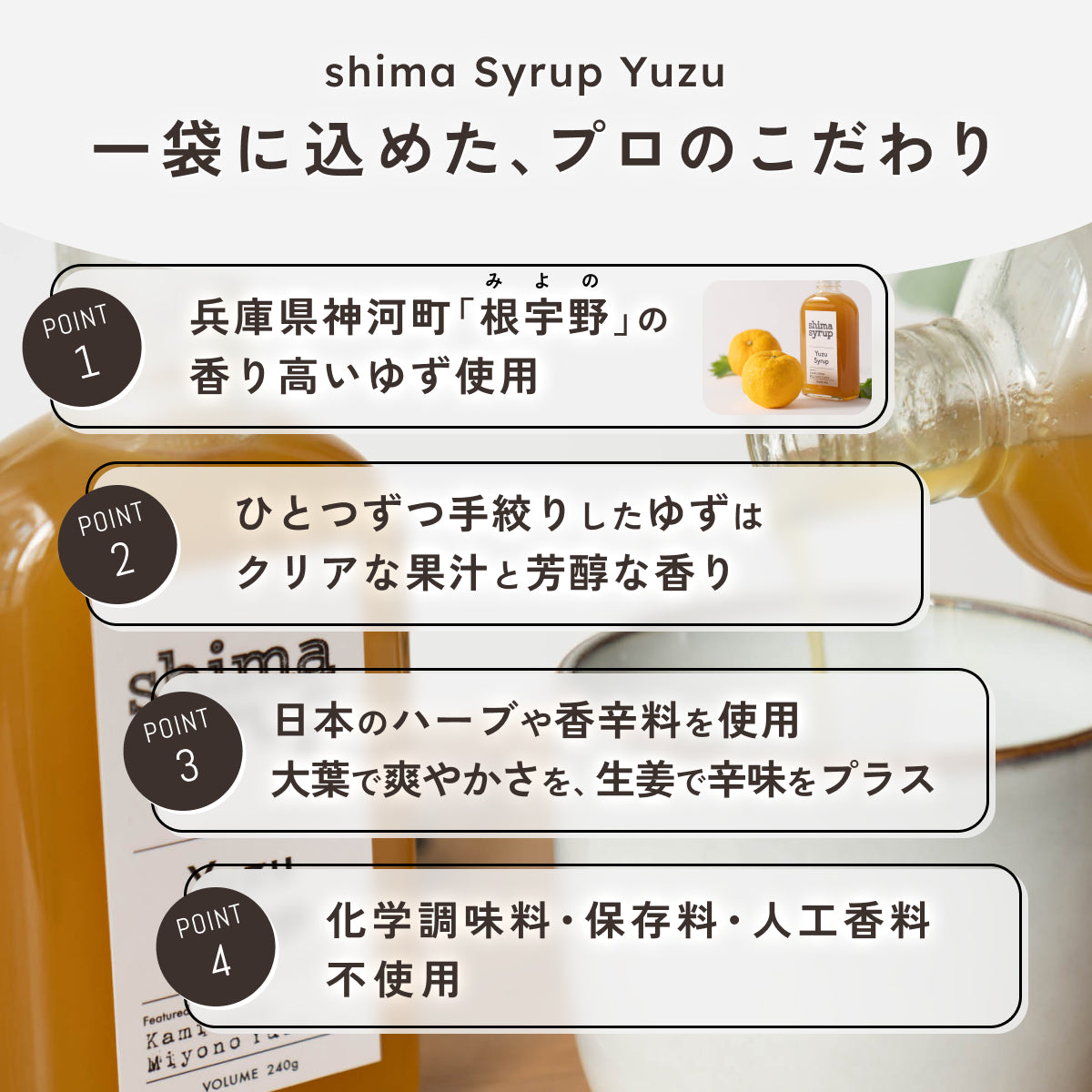 シロップの重さ1に対して4〜5倍の割材で割ってお飲みください。